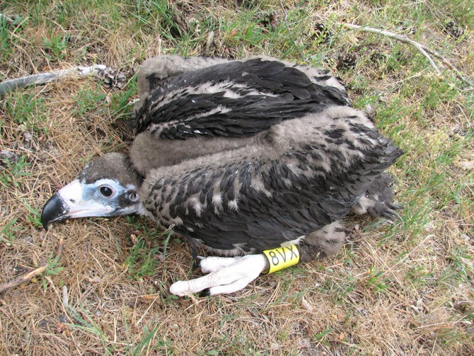 Morcuera portaba dos anillas en sus patas, una de PVC con la inscripción 8VX y otra metálica con el código 1108313, que lo identificaban como nacido en la colonia de Rascafría, en la ZEPA Alto Lozoya. Fue marcado por un técnico de SEO/BirdLife en 2009 dentro del seguimiento que se lleva a cabo para el Parque Natural de Peñalara.