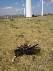 El buitre partido por la mitad, cuyas dos mitades estaban separadas ocho metros, fue hallado el 14 de julio en el Parque Eólico Monte de Las Navas SA, debajo del aerogenerador número 12.