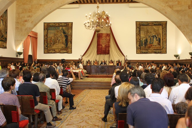 “Gracias a estudiantes buenos como vosotros que vienen a nuestra universidad, entre otras cosas, es en lo que se fundamenta el prestigio de la Universidad de Salamanca”, ha dicho el rector.