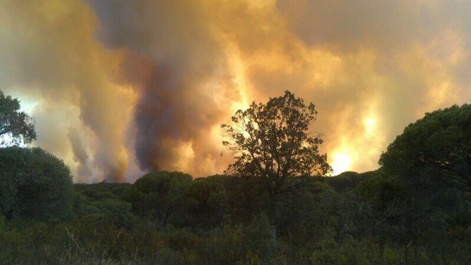 Desde la Junta se ha indicado que las condiciones de extinción son “especialmente difíciles a causa del tipo de incendio”, de copas sobre pinar de pino piñonero en una zona de gran valor ecológico. También de “las condiciones meteorológicas por el fuerte viento del sur”, y del terreno, “con casas y núcleos habitados dispersos y otros elementos que deben recibir atención prioritaria en el curso de la extinción”.