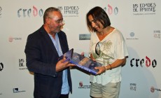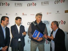 El secretario general de la Fundación Las Edades del Hombre, Gonzalo Jiménez, regaló a la familia un catálogo de la exposición, un vídeo, pinturas para los niños y una caja con el vino oficial de la exposición.