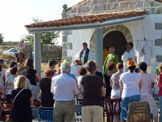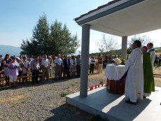La celebración religiosa al aire libre, ante la pequeña ermita, ha contado con la asistencia de unas 200 personas, entre ellas familiares y amigos de algunos de los nueve fallecidos, y algunos de los 22 heridos, ya restablecidos pero con las heridas a la vista.
