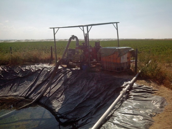 La empresa Grufesa SAT, con domicilio en Huelva y dedicada al cultivo de fresón, cuenta con varios puntos de riego y sus correspondientes depósitos para las plantaciones.