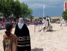 El público, dividido para animar a los caballeros, se portó con tanto entusiasmo como pudieran ser los torneos medievales, como los jinetes pelearon entre ellos, primero a caballo y luego sobre el albero dispuesto para la ocasión.