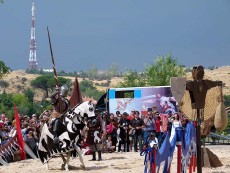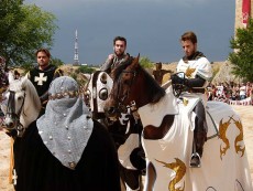Tres caballeros, con sus corceles a juego con los colores verde, blanco y marrón, pusieron en juego sus habilidades al golpear su lanza contra un estafermo, lanzar una jabalina en una diana y coger cintas tras pasar por un arco con fuego.