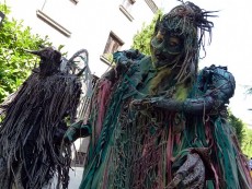 El grupo Legend, de especialistas para cine y espectáculos llegados de tierras alicantinas, fueron quienes pusieron un nuevo toque de color en el mercado, que en la sesión de mañana se vio alterado en los últimos minutos por la lluvia, a pesar que el conde y maestro de ceremonias proclamó “la lluvia no moja”.