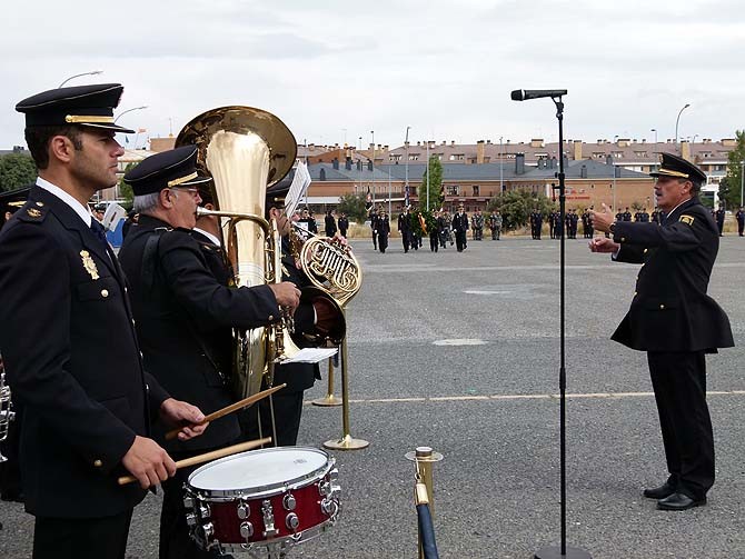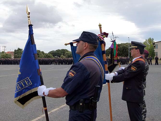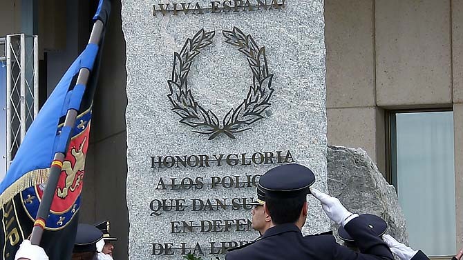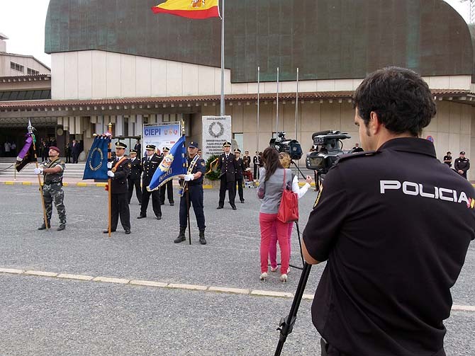 El homenaje a los agentes policiales de todo el mundo ha consistido en una comitiva de agentes, con las enseñas, a la cabeza, de las Unidades de Intervención Policial (UIP), Cuerpo Nacional de Policía y Grupo Especial de Operaciones (GEO).