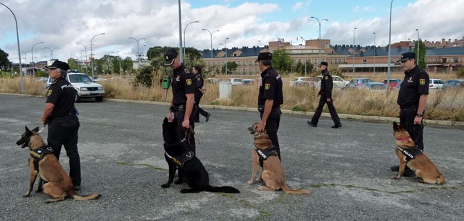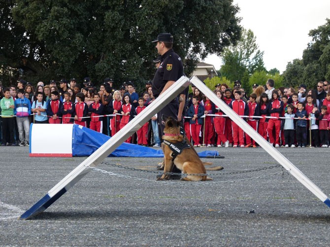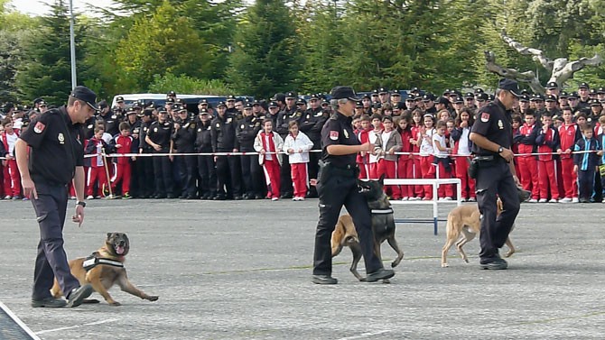 Con motivo de la festividad de los Ángeles Custodios, patrón del cuerpo policial, los especialistas llegados de Madrid mostraron -el viernes- las habilidades de los perros corriendo y saltando, pero sobre todo hallando un explosivo o droga, y efectuando ejercicios de obediencia, defensa y ataque con perros de las razas pastor belga, pastor alemán, pointer y jack terrier.