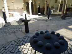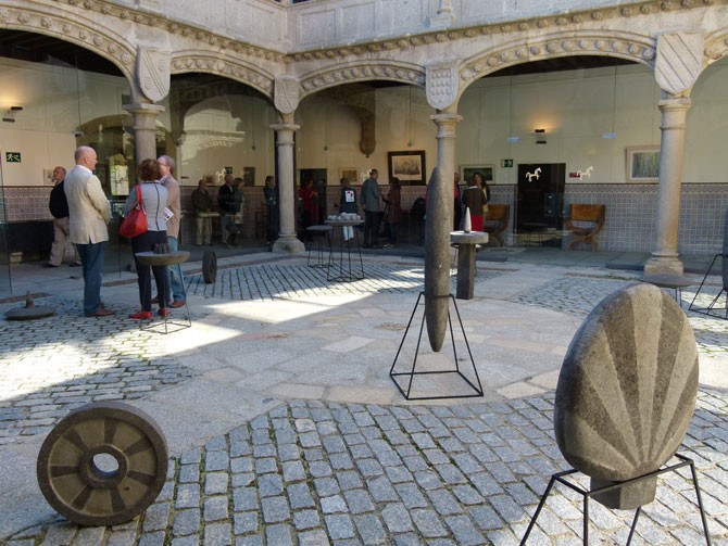 Por un lado, el escultor muestra en el patio y al aire libre sus obras figurativas y abstractas en piedra volcánica “conjuntadas con el claustro”, con el título de ‘Bosque de setas’.