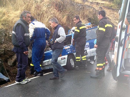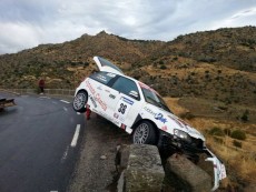 El asfalto húmedo puede haber sido el motivo de este accidente, así como de otro sin consecuencias protagonizado por el dorsal 36, Alberto Jiménez Peribañez, a bordo de un Seat Ibiza Cupra.