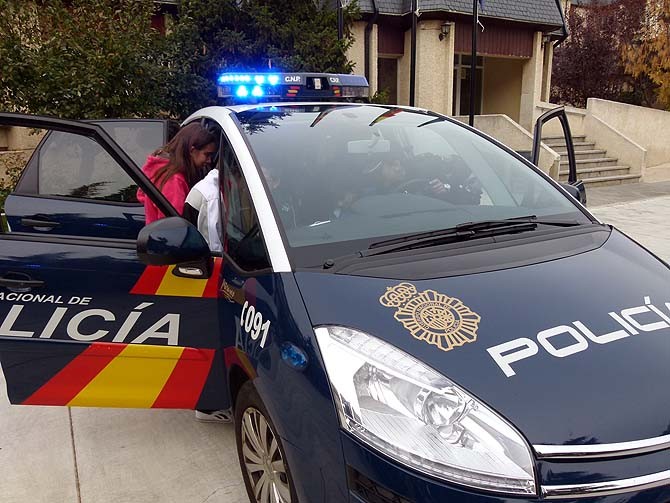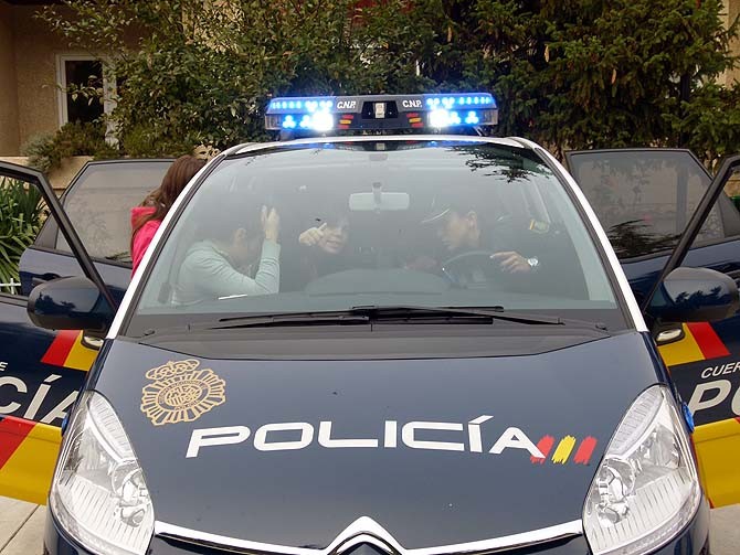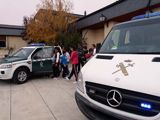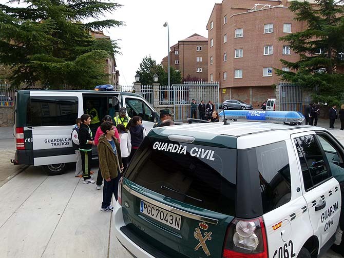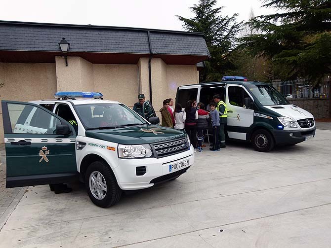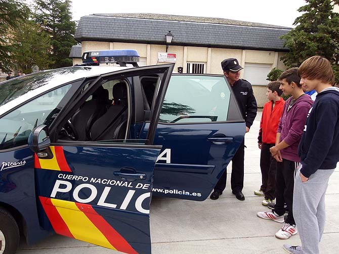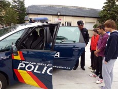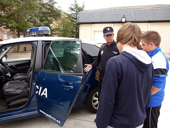 La presentación se celebró en el IES López Aranguren, donde los alumnos se acercaron a los vehículos de Policía y Guardia Civil.
