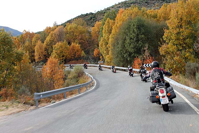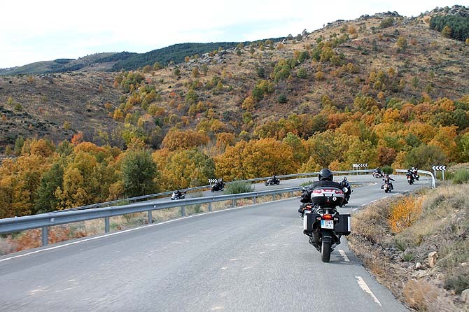 Los colores que tiñen el Valle del Alberche en otoño han llevado a la Asociación Amigos de la Carretera de Ávila a celebrar la quinta edición de la ‘otoñal’, su tradicional concentración motera, que ha recorrido varios municipios de la provincia.