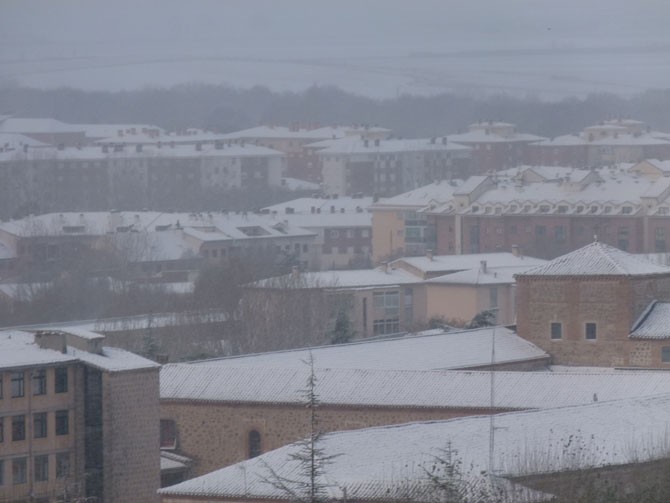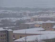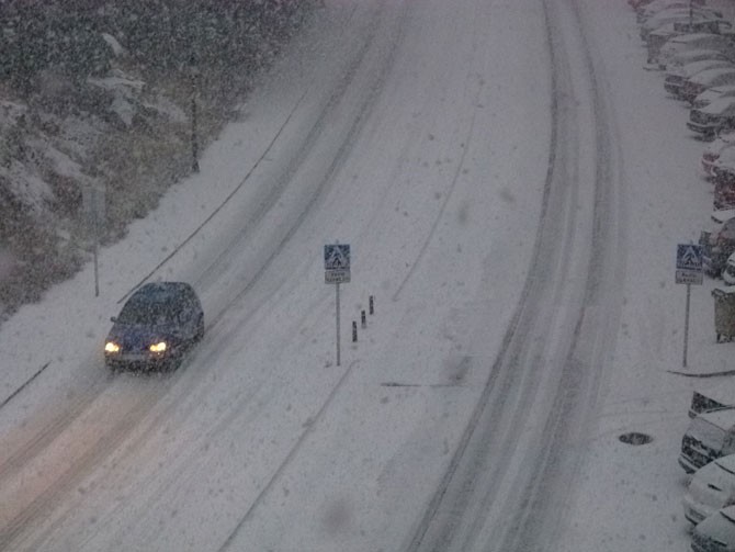 La temperatura mínima bajó hasta los -6,1, pero enseguida subió y ello propició la nevada. A las 8,30 horas era de uno bajo cero.