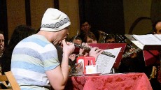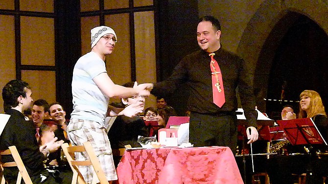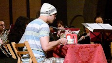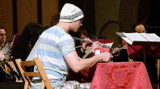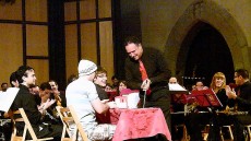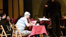 Se trata de la composición ‘Coffee serenade’, que les sirvió casi de despedida del concierto, y que interpretó un músico-guiri que irrumpió en el escenario y se sentó cual si de una terraza se tratase, escenificando su papel a la par que el director de la banda, Juan Carlos de la Fuente.