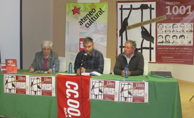 La abogada Francisca Sauquillo, uno de los numerosos letrados de diversas tendencias ideológicas que formaron la defensa, y Pedro Santisteban, uno de los condenados -a 12 años, participaron en el acto organizado por el Ateneo Cultural Jesús Pereda, de CCOO.