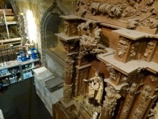 A unos metros de altura, el visitante verá -a partir de enero- desde la pasarela “cómo trabajan los restauradores, limpiando y tratando las piezas”, y podrán acercarse al ábside sur, donde gracias a la iluminación se apreciará una pintura mural -que podría datar de comienzos del Renacimiento- aparecida tras el retablo, colocado hace cerca de 400 años.