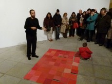 Antes, conformó la obra ‘Rojo 1 #FF0000’, un mosaico de color rojo con los cuadrados de ese color que los asistentes llevaban impresos y depositaron en el suelo, o que les habían remitido tras avisarlo en Facebook.