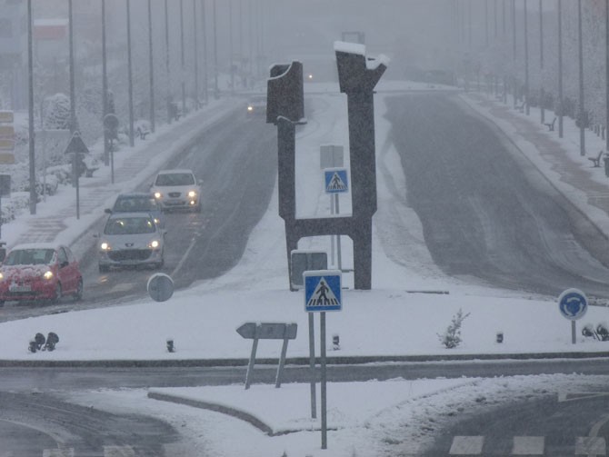 La nieve llegó a la capital en domingo y provocó problemas en las carreteras de la provincia, cuya situación mejoró a lo largo del día, aunque es necesario extremar la precaución por el hielo tanto por parte de vehículos como por los peatones.