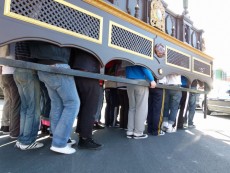 Miran los pies bajo el trono para detectar el detalle a mejorar, y caminan por el polígono, a la espera de que llegue Semana Santa y puedan culminar, lo que no han hecho por la lluvia los tres últimos años, ya que el último ni siquiera pudieron salir.