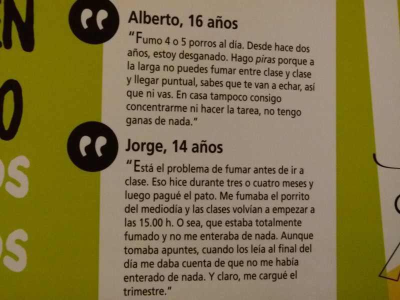 Se trata de una muestra que recorre los centros educativos, se trata de mostrar, con testimonios de jóvenes, "los efectos y consecuencias en la salud y en el rendimiento escolar", y de apoyarlos a "saber cómo y porque decir no" a su consumo, según la concejala de Juventud, Beatriz Jiménez.