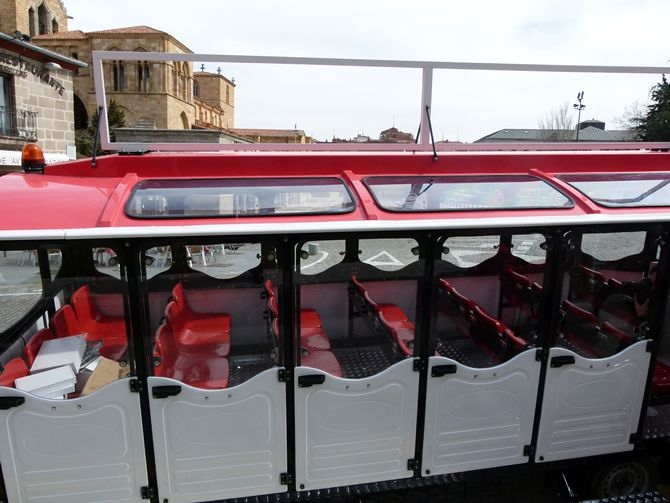 El murallito nunca fue de mi devoción sobre todo cuando me tocaba ir detrás del mismo por el centro a paso tortuga pero este nuevo tren turistico en blanco y rojo encima es feo, cantoso y fuera de la estética de la ciudad. Me imagino que los colores elegidos son en honor al logotipo de la tortuga cagona que tenemos en la ciudad y que no tiene esencia de la ciudad ya que fue realizada por gente de La Rioja sin conocimiento ninguno de lo que era Ávila más alla de la muralla. Lo dicho un horror más.