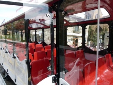 Con dos vagones, dispone de 56 plazas, con dos lugares para discapacitados en la parte de atrás. El recorrido permite ser seguido en cuatro idiomas por auriculares (un euro) gracias a un GPS.