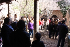 De este modo, pudieron entrar en el patio del palacio del general Vicente de Río Careaga y contemplar la conocida como 'Marrana cárdena', una pieza zoomorfa originaria de la cultura vaccea. En el mismo patio se conservan además diversos elementos de granito, columnas, capiteles y una pila bautismal que proceden, casi con toda seguridad, de la iglesia, desaparecida en 1847, y que da su nombre a esta plaza arevalense.