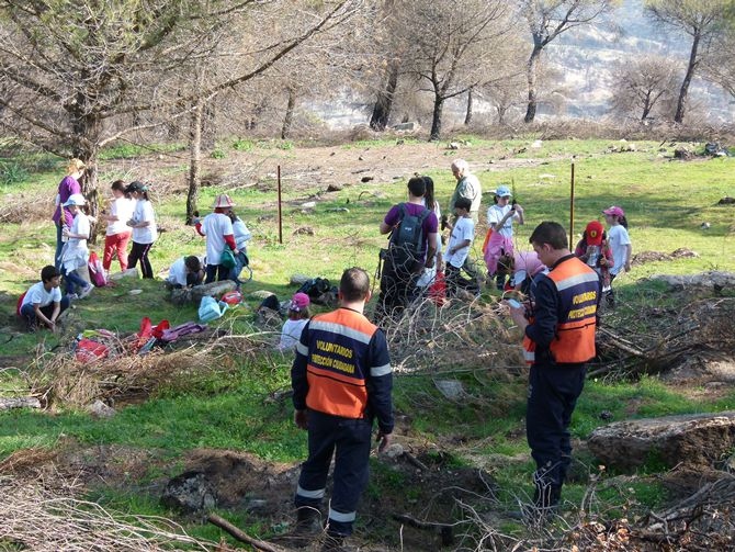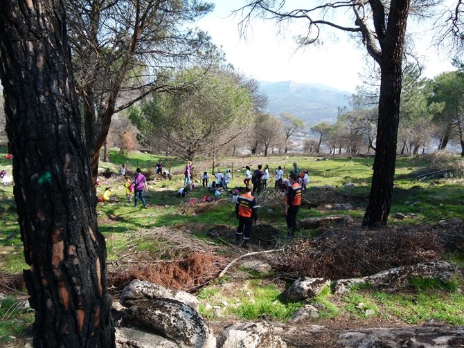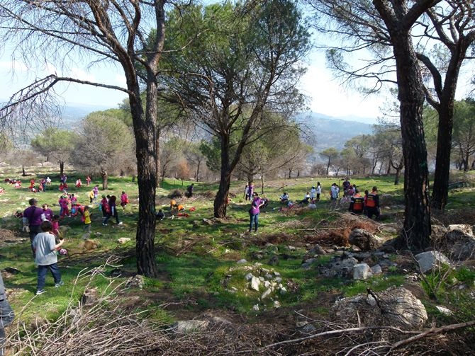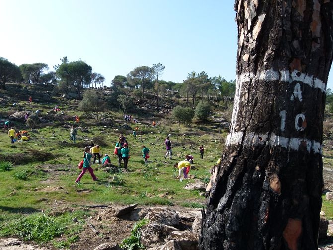 Para llegar a esta zona, los chavales ascendieron por un camino en pendiente y, de la mano de profesores y agentes forestales sembraron 750 plantones de encinas y otros tantos de pinos con las indicaciones de profesores y personal de medio ambiente.