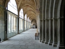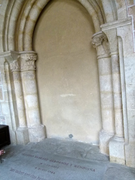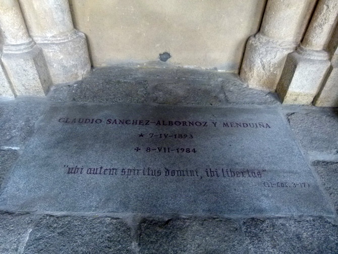 Los enterramientos en los templos fueron suprimidos por el Concilio Vaticano II salvo para obispos y cardenales, de ahí que se reservase el claustro para personajes ilustres, como el historiador Claudio Sánchez-Albornoz, cuya tumba está a tres metros de la de Suárez.
