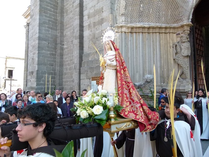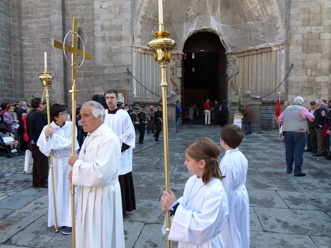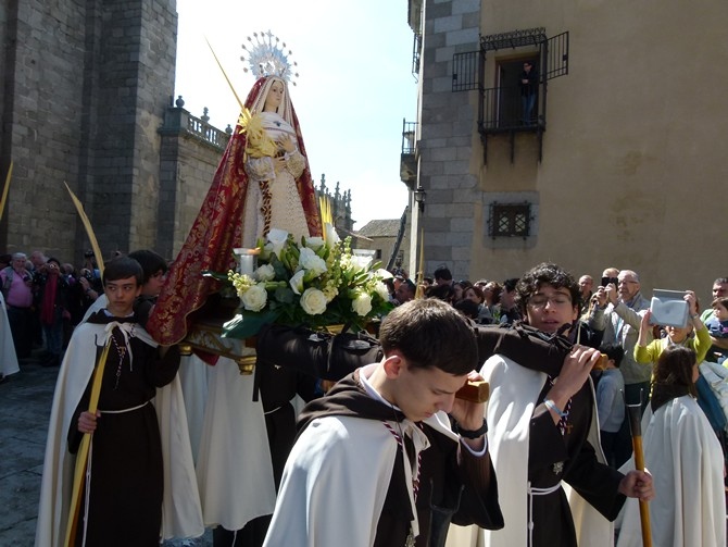 Con el sonido de la formación medinense habitual en Ávila, con su sección de gaitas, la Banda de Cornetas y Tambores de la Cofradía de la Oración del Huerto y la Vera Cruz , de Medina del Campo (Valladolid), salió la imagen de María Santísima de los Infantes, portada por jóvenes de la Juventud Antoniana,