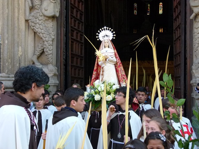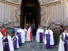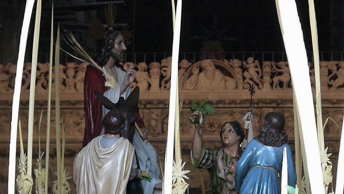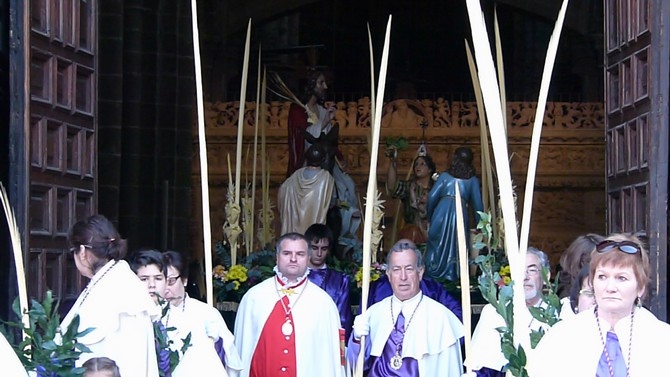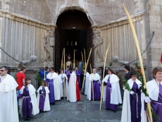 La bendición de las palmas y la procesión por el templo fue previa a la misa, que se inició a las 11 horas. Al término, pasado el mediodía, en la plaza de la Catedral esperaban grupos de niños procedentes de las parroquias, algunos de ellos con pancartas alusivas a la festividad.