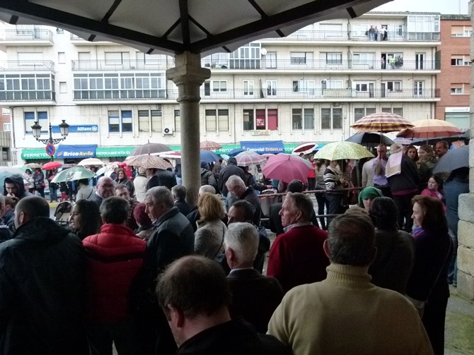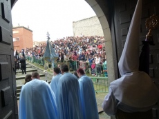 La apertura de la puerta fue recibida con aplausos por los espectadores que esperaban. Cuando había salido ya el comienzo del desfile y asomó el paso de Nuestro Padre Jesús Redentor, otra vez la lluvia sembró de dudas a los responsables, que dudaban y oteaban los claros en el cielo.
