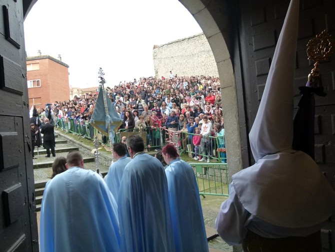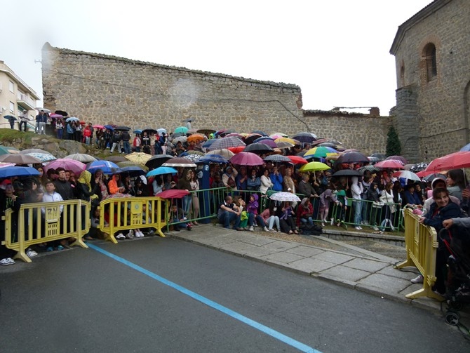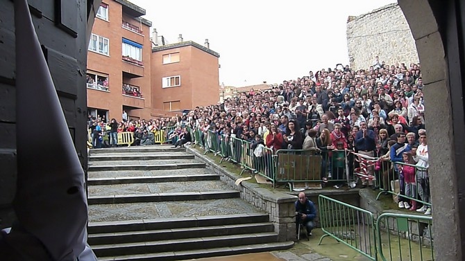Como al comienzo, fue numeroso el público que acudió a presenciar a su regreso la entrada del desfile en la ajustada puerta de Las Gordillas tras descender la nada fácil escalinata con los tronos que pesan en torno a mil kilos.