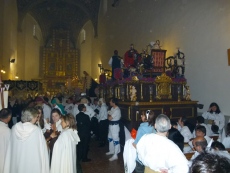 Dentro del templo creció la inquietud y, pasadas las 16,30 la junta de gobierno de la hermandad decidió que a las 17 horas se decidiría. Casi cerca de esa hora y, visto que no llovía, se celebró con una ovación los preparativos.