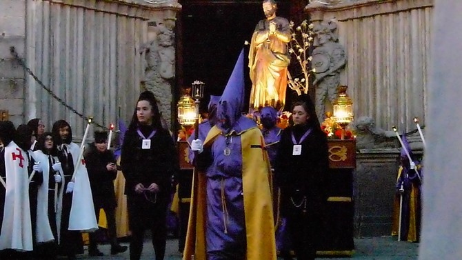 Con varios cientos de capuchones, de morado y capa amarilla, la Archicofrafía de la Real e Ilustre Esclavitud de Nuestro Padre Jesús Nazareno Medinaceli mostró sus galas en el recorrido que partió a las 21 horas del Martes Santo desde la Catedral.