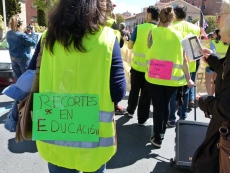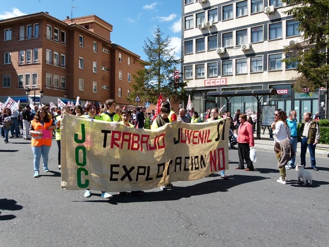 Pendientes de la negociación con la nueva empresa adjudicataria de la limpieza de los centros educativos, las trabajadoras exhibieron una pancarta, 'No a los recortes de limpieza en los colegios públicos', mientras que jóvenes de la JOC se manifestaron con la pancarta ‘Trabajo juvenil sí, explotación no’ y frases como ‘Fuga de cerebros’, ‘Jóvenes emigrantes’ o ‘Recortes en educación’.