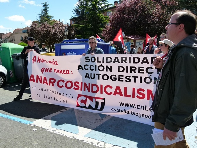 Al final de la comitiva, la CNT se añadió como 'bloque crítico' con una pancarta en la que podía leerse 'Solidaridad, acción directa, autogestión. Ahora más que nunca anarcosindicalismo, ni subvenciones ni liberados’.