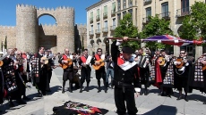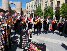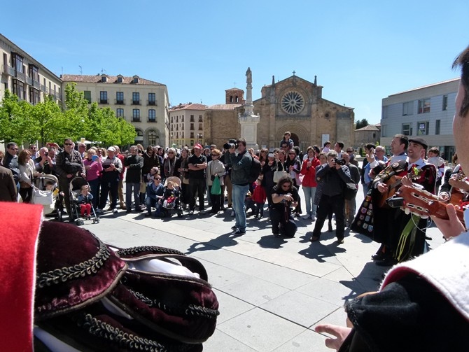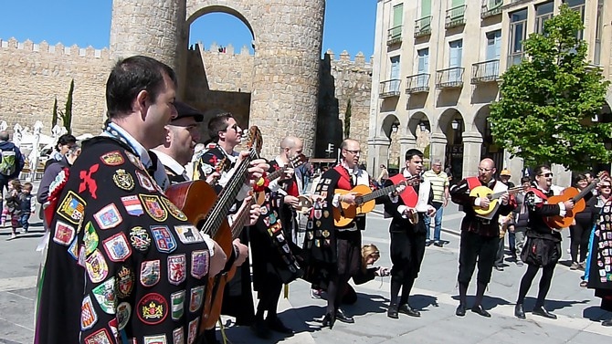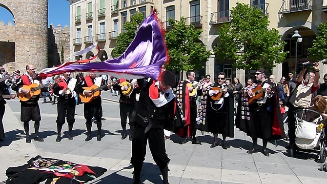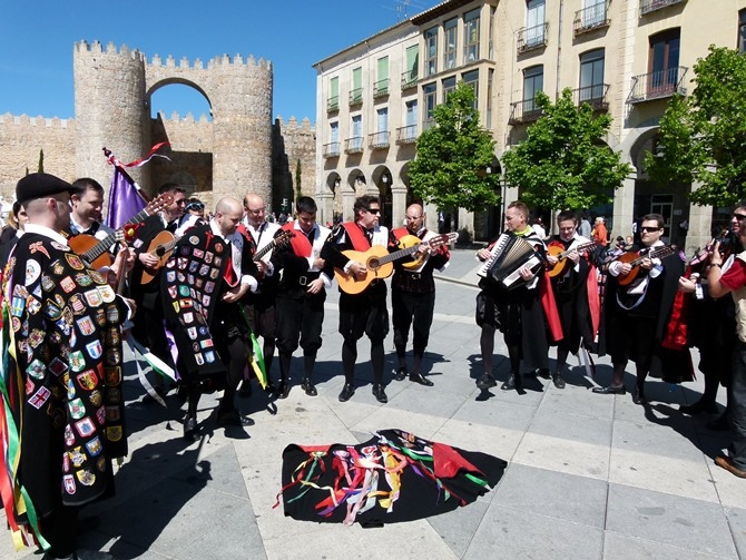 Han querido aclarar que son una tuna veterana, pero reconocen que no la primera que hubo en Ávila. Armados con guitarra, laúd, bandurria y acordeón, dieron rienda suelta a ese repertorio histórico de las míticas rondallas estudiantiles. 'Clavelitos', 'Cielito lindo', 'Compostelana' ... o la más moderna 'Cacao maravillao', que sonaron por las calles.