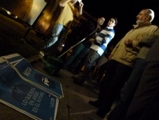 UPyD y Vox acudieron a la Plaza de Santa Ana pero no pegaron carteles: los primeros los sustituyeron por un dúo que, entre globos magentas interpretó el Himno Europeo, basado en la Oda a la Alegría, y los segundos porque no les había llegado los carteles.