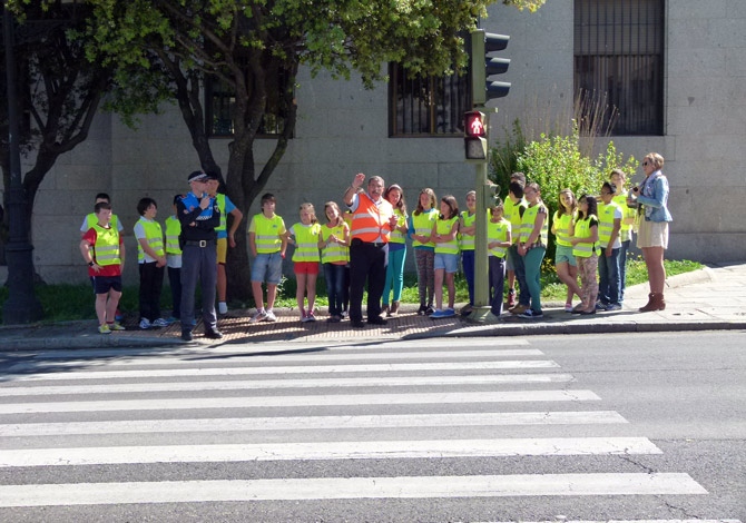 Participan 361 escolares de los colegios Claudio Sánchez-Albornoz y Las Nieves. La intención es que los niños acudan a clase a pie por una ruta segura, pero muchos han reconocido que no les queda cerca, cuando el alcalde se lo ha preguntado a un grupo del Sánchez-Albornoz.