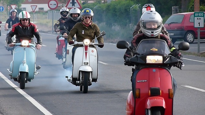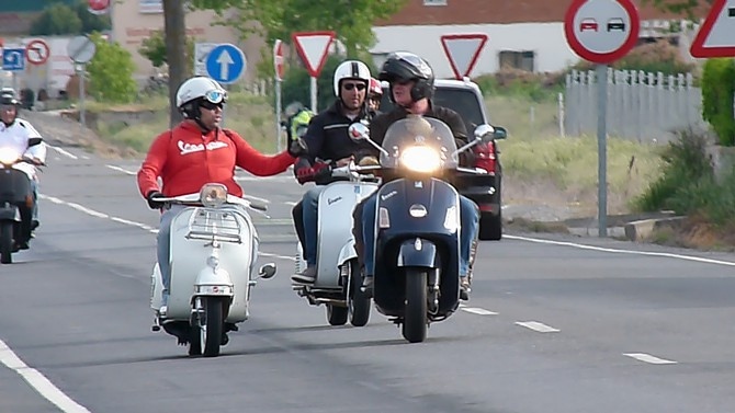 De todas las edades, alguna con cinco décadas y otras más nuevas, tuneadas de todos los colores imaginables, recorrieron la rutra preparada por el club Vespaliaos, que se alargó por un centenar de kilómetros, que los scooters de todas las edades culminaron, con paradas para el repostaje, de los vehículos y de pilotos y copilotos.