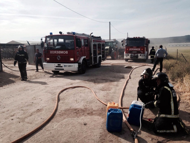 El incendio de una nave de ganado ha tardado más tiempo en extinguirse por la rotura de un depósito de gasoil, que se encontraba en el interior, y que derramó el combustible por el suelo.