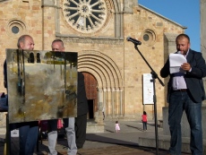 El pintor malagueño se llevó el Premio Ayuntamiento de Ávila, dotado con 2.500 euros, con una imagen de la plaza de la Catedral con el abandonado Hotel Continental al fondo.