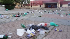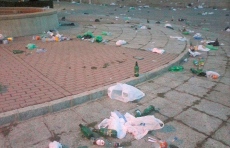 El hecho, advertido por un lector, deja ver los abundantes desperdicios en la mañana del sábado, que no comenzaron a recogerse hasta las 10,15 horas.