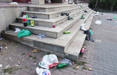 El retraso en la limpieza de los restos del ya popular botellón del parque de San Antonio ha vuelto a ofrecer una imagen pésima de la ciudad, con un espacio atestado de residuos.