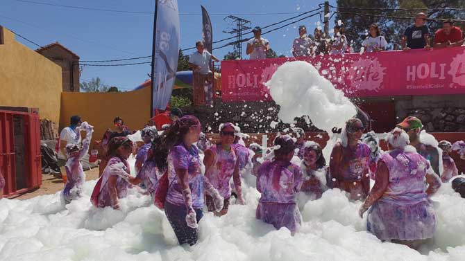 Después hubo lanzamientos colectivos de polvos de colores. En el evento se empleó polvo de colores elaborado con almidón de maíz y colorantes naturales, aprobados para su uso por la CE. Los inscritos recibieron en su kit de corredor la camiseta, el dorsal y una bolsita de polvos de colores cada uno.