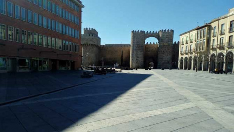 Plaza de Santa Ana en la mañana del domingo.Las calles desiertas son la imagen del primer día de estado de alarma en Ávila.