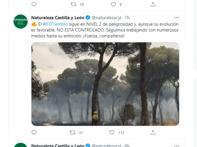 Se da la circunstancia que el Ayuntamiento de El Tiemblo, en la misma red social, había dado igualmente por “CONTROLADO” el incendio, pese a que las informaciones que llegaban desde la Junta y la Delegación del Gobierno en Castilla y León no decían eso. En este sentido, el delegado territorial de la Junta, José Francisco Hernández, dijo en torno a las 11 horas del sábado que el incendio podía estar “próximo” al control.