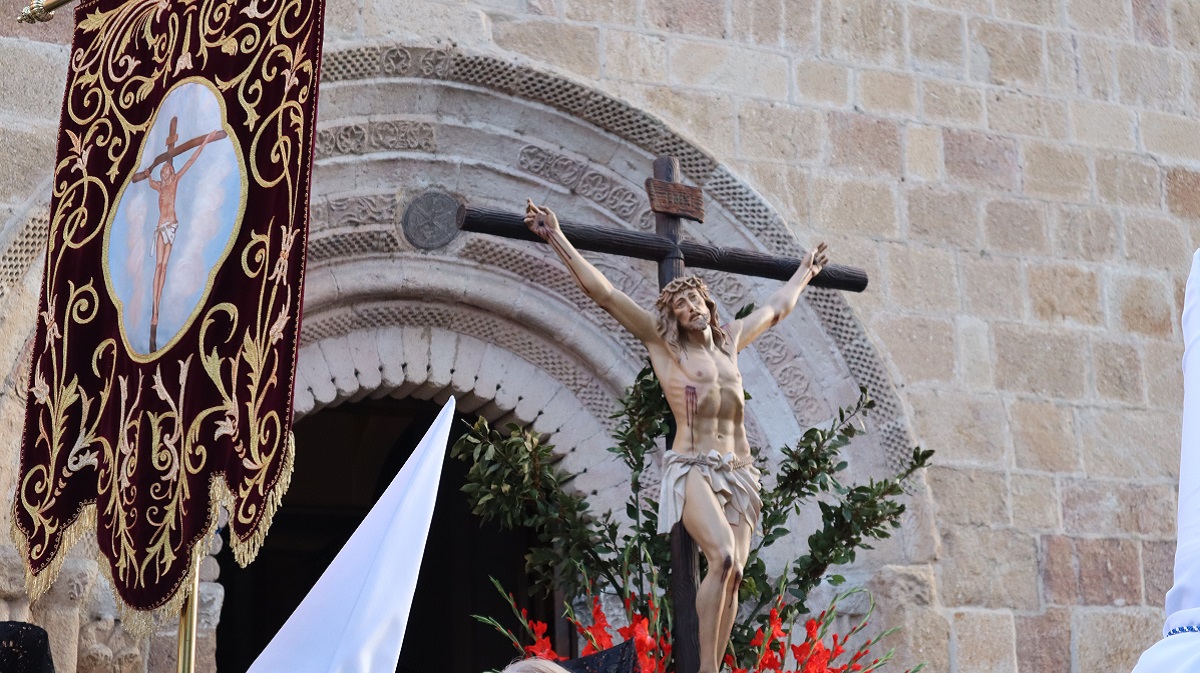 Y es que, la procesión del Stmo. Cristo de las Batallas cambiaba su itinerario para pasar por la calle Comuneros de Castilla y “homenajear” a Julián Sánchez, el antiguo hermano mayor de la hermandad. “La idea es que el cristo pare enfrente de su balcón y siga el recorrido hasta volver a la iglesia de San Pedro”, señalaba Faustino García, hermano mayor del Cristo de las Batallas, minutos antes de comenzar la procesión.
