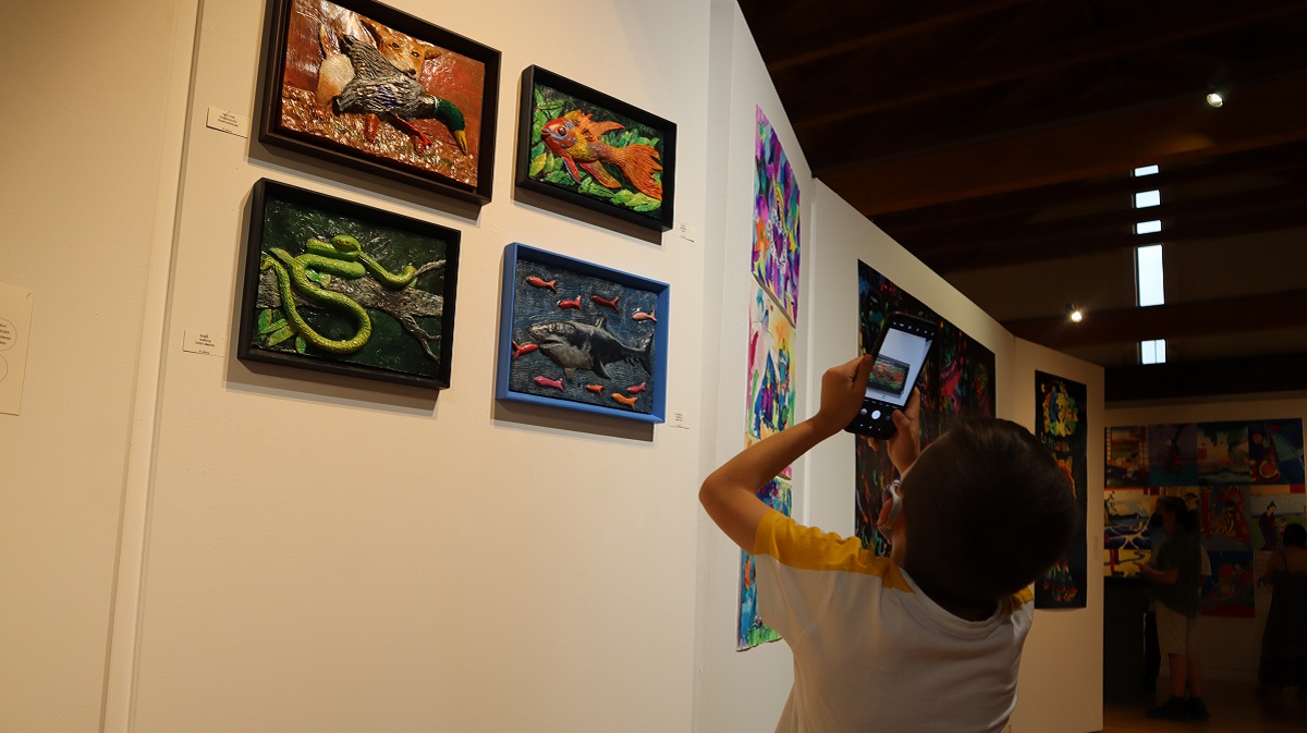 Los tradicionales máscaras de la provincia, la cantante Rosalía, retratos de mujeres, personajes manga, e incluso una versión de 'Manos dibujando' de Escher, son algunas de las obras que se pueden observar.